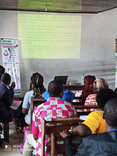 - Ateliers théoriques : Appropriation du fond vert et montage du projet fond vert ; technique de l’animation communautaire ; énergies renouvelables.