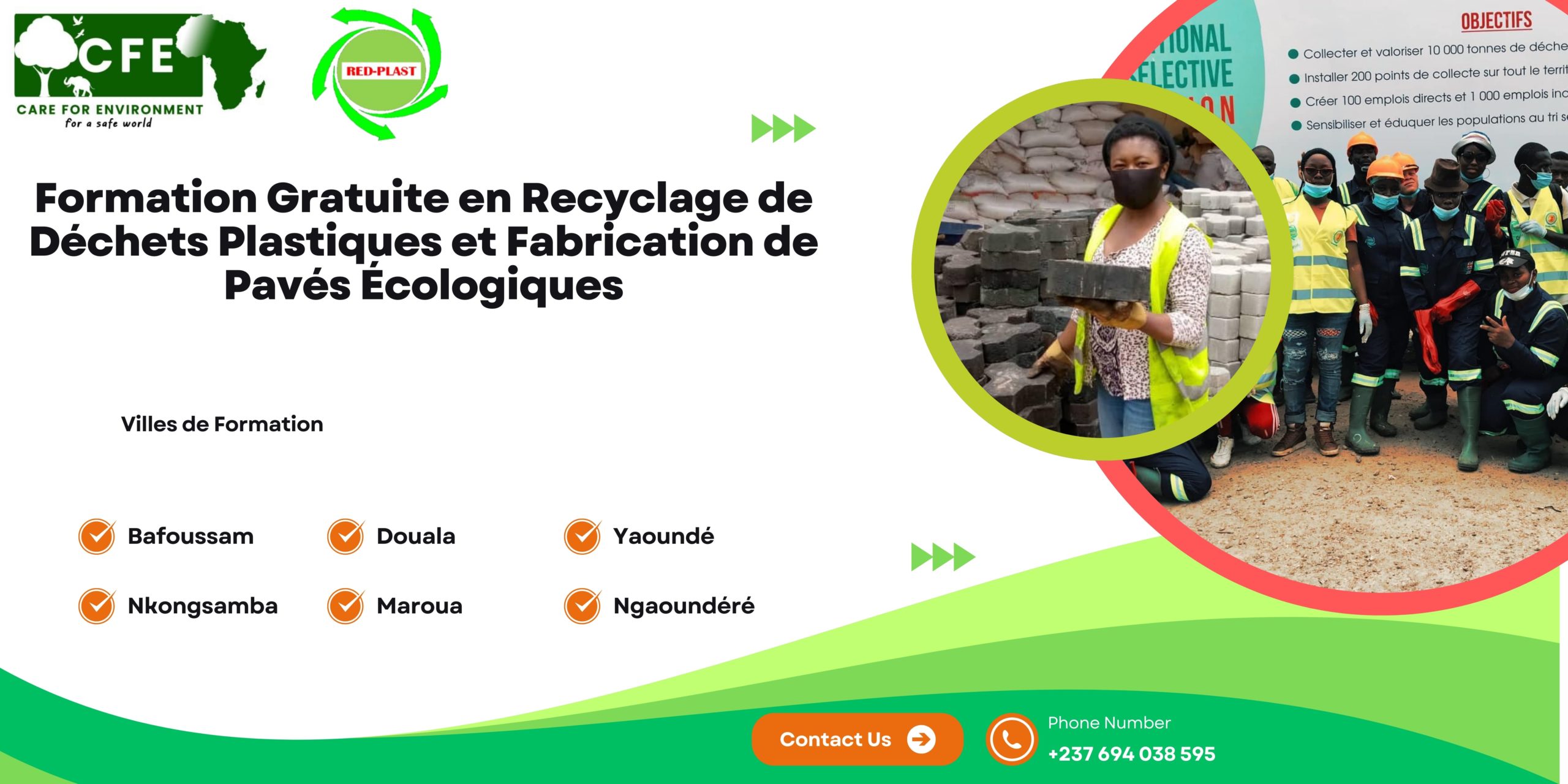 Dans le cadre de notre partenariat avec l’entreprise RED-PLAST, L’association Care For Environment – CFE avait annoncé le lancement d’une formation gratuite de trois mois en recyclage de déchets plastiques et fabrication de pavés écologiques, ceci dans le cadre du programme vacances sans déchets plastiques.